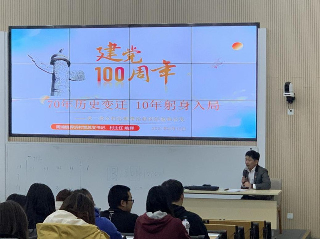 通过姚辉书记这一堂鲜活生动的思政课,既让在座的青年学子领略到我国乡村治理70年来波澜壮阔的变化,也让青年学子体会到乡村振兴下的和谐安定、生态宜居是人民得以健康的重要保证,同时也激发在座学子以更高的奋斗热情,积极作为,责任担当,以优异成绩迎接建党100周年。(马克思主义学院)