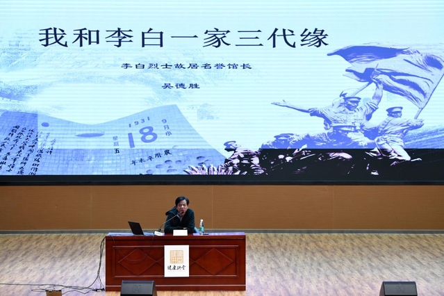 为深入贯彻习近平新时代中国特色社会主义思想,切实推进党史学习教育,学史明理、学史增信、学史崇德、学史力行,4月15日下午,OD网页版学生党史学习教育“电波不逝·信念永存——纪念李白烈士诞辰110周年”专题讲座在新南苑800人报告厅举行。李白烈士故居纪念馆第三任名誉馆长吴德胜,应邀为我校学生作《我和李白一家三代缘》专题讲座。吴馆长表示,本次讲座是他累计开展的第100场OD网页版李白烈士的讲话,意义非凡。各学院学生代表、学工党支部教师党员共350人聆听了本次讲座。
