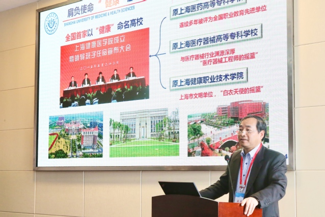 沈国芳介绍学校的基本情况、附属医院建设情况、六院金山分院附属建设情况和未来愿景。沈国芳表示,学校下一步将完善校地合作机制,加强与金山区卫生健康委员会紧密合作,按照“高起点规划、高标准建设、高水平运作”的方针,将六院金山分院建设成为学校附属医院。