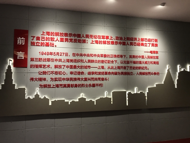 随后,大家怀揣着对革命先烈们尊敬的心情徐徐走进上海解放纪念馆。纪念馆内以实施“钳击吴淞、解放上海”的战役决策为陈列主线,重点展示上海战役宝山战区解放军将国民党守军主力吸引到郊区并将其歼灭,从而保全上海市区的主要史迹。展馆由序厅、主展厅和大型多媒体主题情景剧场组成。序厅由解放军钳形攻势、冲锋前进的装置艺术场景,主题雕塑和功勋柱三大艺术形象组成,寓意解放军前仆后继、浴血奋战,取得上海战役的伟大胜利,广大人民将永远铭记这一历史。主展厅以时间为脉络,通过“运筹帷幄”“军政全胜”和“城市新生”三部分,运用丰富的具有历史意义的照片,以及很多见证历史的勋章、先烈们的遗物,还有战斗中曾经使用过的手枪、反坦克炮、重机枪等,还有用声光电先进技术制作的动态,再现战斗场面的场景复原,多媒体幻影成像和影视短片,国民党军防御工事碉堡及深水壕沟的复原场景,以及描绘解放军指战员英勇形象的油画、雕塑等艺术作品,完整讲述了72年前的5月12日至27日在这片土地上发生的历史全过程,重现了当年人民解放军广大指战员鏖战月浦,激战刘行、杨行,钳击吴淞,前赴后继、浴血奋战和中共上海地方组织积极配合的壮观画卷,以激励后人为振兴中华而奋勇前进!本次参观,让教学部党员与教师们在上海解放72周年之际,再次重温了上海解放的历史,真切地感受到革命先辈为民族解放和人民自由而舍生忘死的牺牲精神。大家无不为这一战役的艰险,无数战士用鲜血和生命换来的胜利而感动涕零,更为解放军取得上海战役、进而取得全国解放的伟大胜利而感到精神振奋!上海解放战役的胜利,使上海这座城市结束了国民党20余年的反动统治,结束了百年来帝国主义侵略奴役中国人民的历史,完整地回到了人民的手中,在人民的手中实现了伟大的新生,人民将永远铭记这一历史!