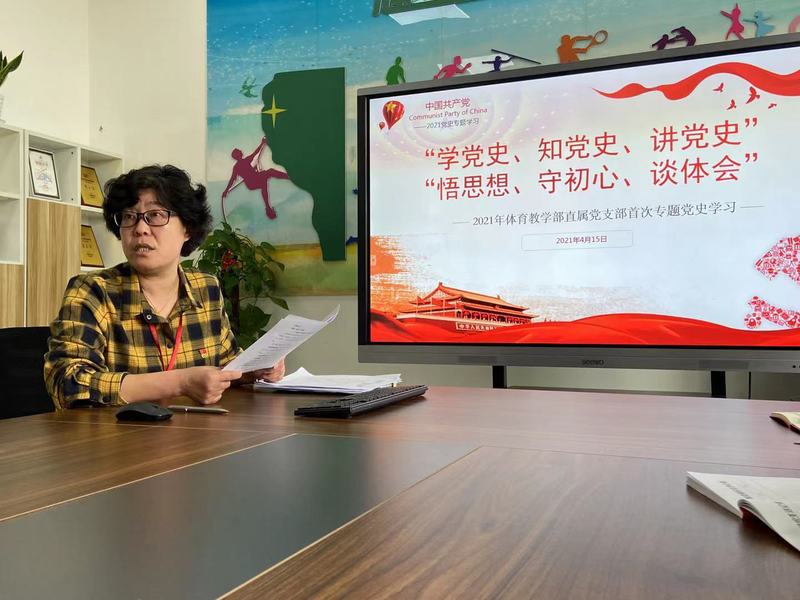 中国共产党的奋斗史是一部波澜壮阔的历史,在她的领导下,广大党员和全国各族人民经过艰苦卓绝的努力,开创了中国发展的崭新纪元。根据党史学习教育领导小组办公室OD网页版党史学习教育工作提示要求,2021年4月15日上午,体育教学部直属党支部在南苑1号楼206会议室开展首次专题党史学习,会议由直属党支部书记郁建新主持,学部全体党员参加。