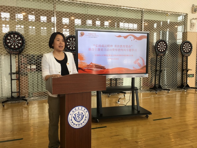 最后,马克思主义学院直属党支部书记朱清进行总结发言。她指出,两个教学单位发挥各自优势联合举办了这次活动,活动的形式创新,内容丰富,收获很多。这既是一次联组学习活动,又是一次党建联建活动;既是一次提升政治理论素养的学习活动,又是一次提升凝聚力的团建活动;既是一次师德师风专题学习,又是一次党史学习教育。通过学习党史,学习成昆精神,补精神之钙,筑思想之魂,使我们更加坚定理想信念,更加清醒认识到强师德,正师风的重要意义,激励我们不忘为党育人、为国育才的初心使命,努力培养德智体美劳全面发展的社会主义建设者和接班人。(马克思主义学院 体育教学部)