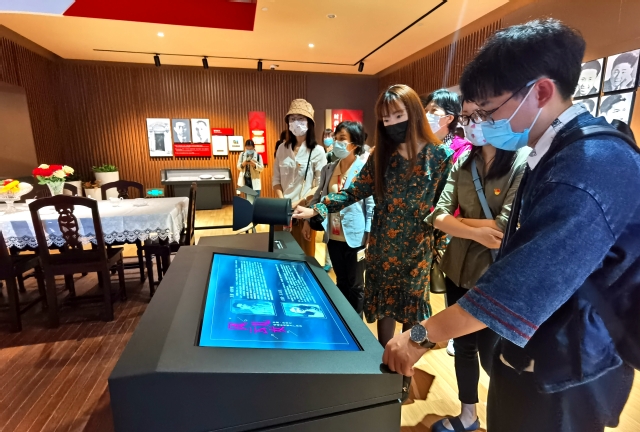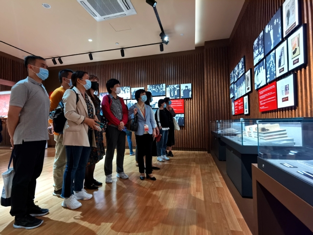 师生党员步入国歌展示馆,参观了“民族危亡的怒吼声”、“时代呼唤的最强音”、“民族解放的冲锋号”、“强我中华的进行曲”、“伟大复兴的主旋律”国歌主题展,展厅中陈列的一张张照片、一件件文物、一份份文献,生动重现了那段风云激荡的峥嵘岁月,大家跟随着历史足迹,仿佛乘坐时光穿梭机,重回上个世纪,通过实物陈列、场景再现、多媒体互动展示,呈现了《义勇军进行曲》从电影《风云儿女》的主题曲到成为国歌的发展历程,深深感受到中华民族坚忍不拔的精神、众志成城的决心和力量。