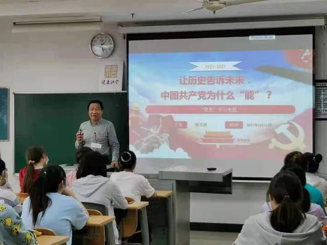 开展党史教育,是牢记初心使命,推进中华民族伟大复兴历史伟业的必然要求;是坚定信仰信念,在新时代坚持和发展中国特色社会主义的必然要求;是推进党的自我革命、永葆党的生机活力的必然要求。在“学什么”这个问题上,孙教授引用习近平总书记的讲话内容作了说明,“学习党史时要准确把握党的历史发展的主题主线、主流本质,正确认识和科学评价党史的重大事件、重要会议、重要人物。”让历史告诉未来,中国共产党为什么“能”。 孙教授带领同学们回顾了在中国共产党的领导下创造的“中国奇迹”,以脱贫攻坚战为例,详细阐述中国共产党为什么“能” 的问题。