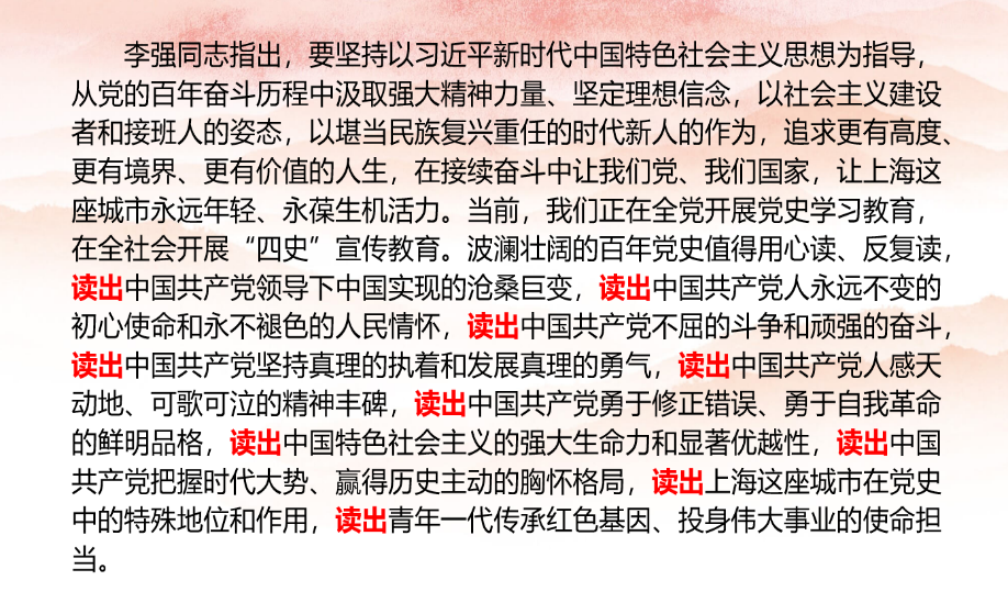 “波澜壮阔的百年党史值得用心读、反复读”,过去百年,中国共产党的伟大征程与辉煌已经书写;今后历史新画卷将由我们一代又一代的青年继续书写,我们定不辱使命、不负重托,书写出属于我们和青年的崭新篇章。(医疗器械学院)