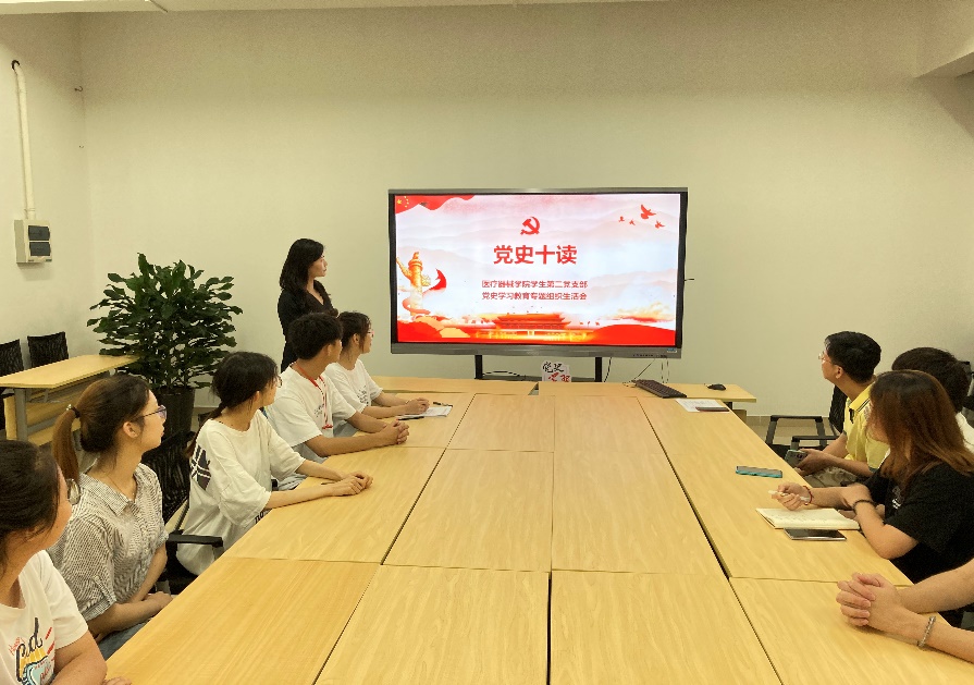 市委书记李强同志6月18日在上海交通大学为师生代表上党课并作形势报告,提出了“党史十读”要求。在医疗器械学院党史学习教育第二阶段工作要求的指导下,医疗器械学院学生第二党支部组织党员同志们认真学习了“党史十读”。