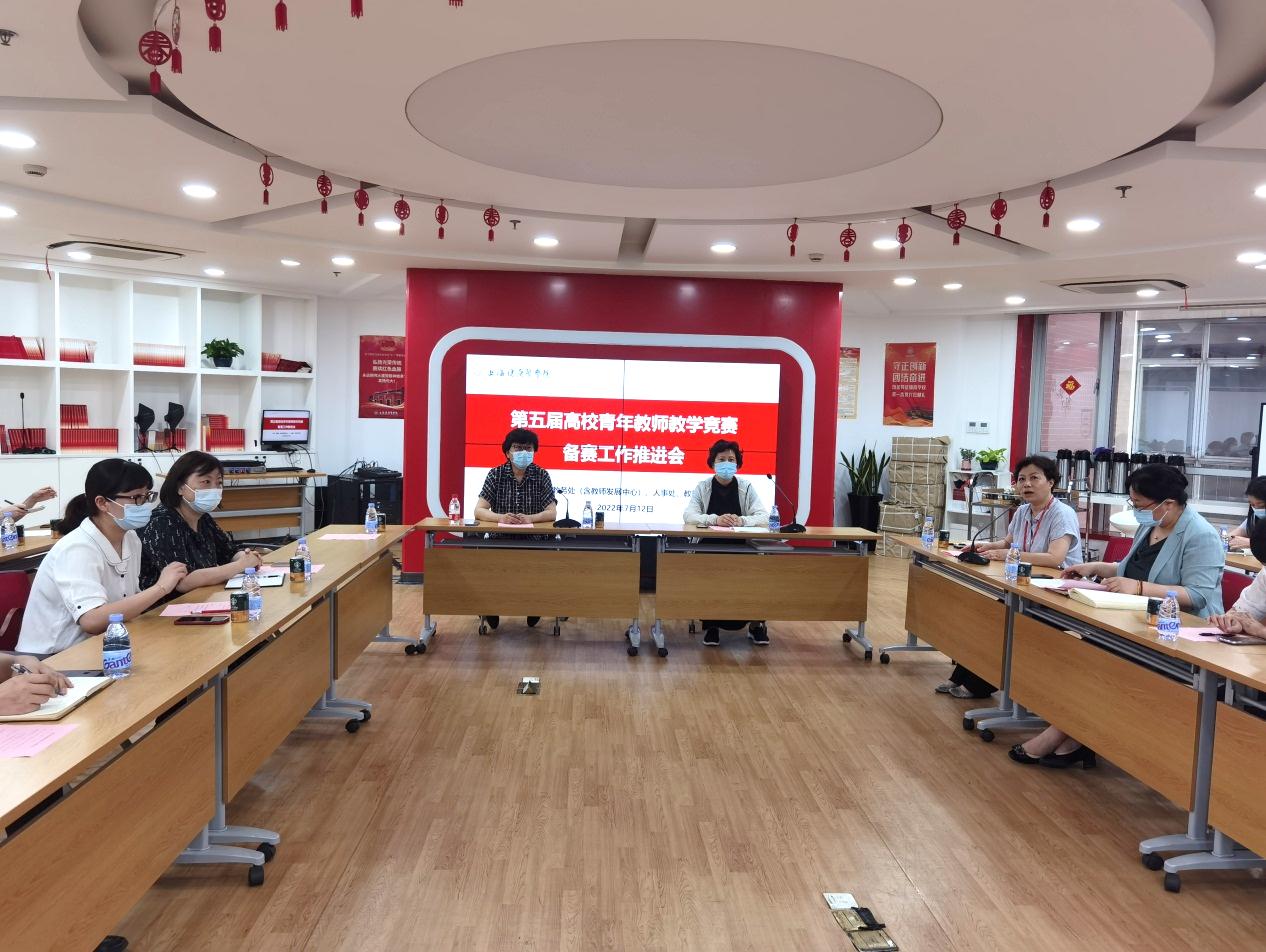 2022年7月12日下午,由学校青教赛工作组主办的第五届高校青年教师教学竞赛备赛工作推进会在北苑1号楼500会议室召开。校党委副书记、副校长唐红梅,党委副书记、工会主席于莹,工会常务副主席凌文惠,教务处处长、教师发展中心主任王莉,党委教师工作部部长金东英、人事处副处长黄寅、各学院及教学部分管教学院长、第五届上海高校青教赛参赛选手、各学院教学部青年教师代表70余人以线上线下方式参加了培训会。会议由凌文惠主持。